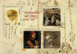 LEONARDO DA VINCI. QUATTRO FRANCOBOLLI PER CELEBRARE IL GENIO VINCIANO A 500 ANNI DALLA SUA SCOMPARSA