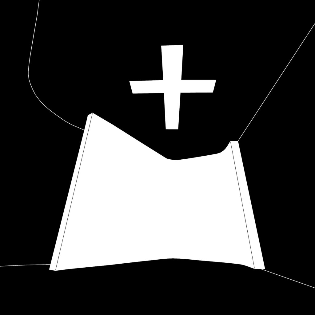 Una parte é in vetro e si apre verso la piattaforma esterna per le celebrazioni estive. Anche il tetto segue una curva che si conclude formando un portico esterno. La croce, simbolo cristiano, é disposta sul tetto dello spazio dell’addio dove diviene una fonte di luce naturale durante il giorno e di luce artificiale nelle ore serali. I materiali utilizzati sono il cemento lucido, il legno di larice, il vetro.