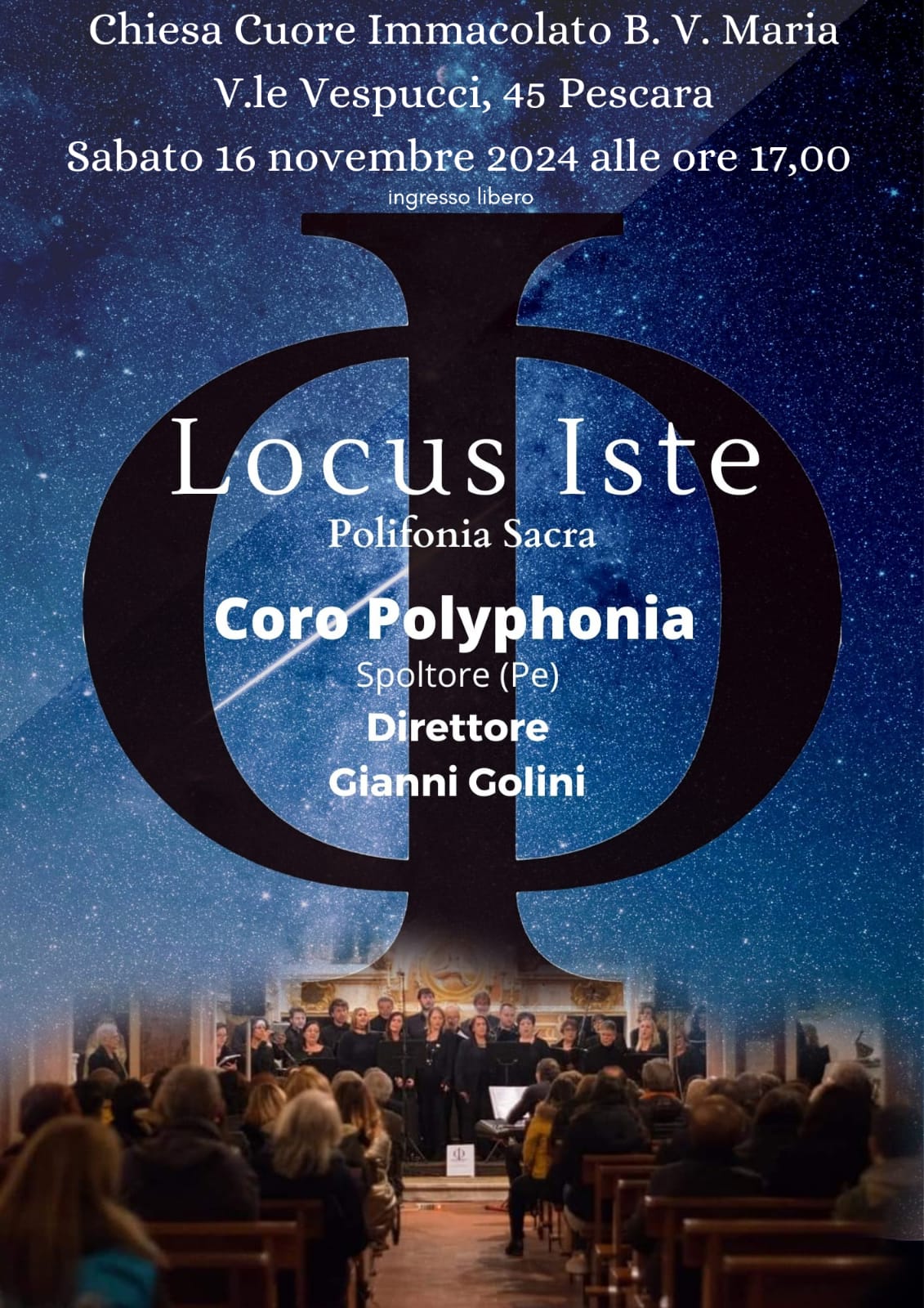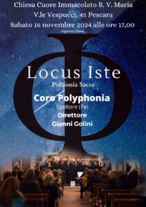Restituire la polifonia sacra al luogo per la quale è stata scritta, è l’obbiettivo di “Locus Iste”. Serie di concerti, con le musiche tra l’altro di autori come G.P. da Palestrina e C. Monteverdi, per le chiese più belle del territorio abruzzese. Esistono, infatti, canoni estetici di architettura e arredi propri del luogo sacro che si legano armoniosamente con quanto scritto da mani quanto più ispirate perché tanto più sapienti. Esperienza che soddisfi quell’anelito verso il trascendente che è proprio di ogni essere umano a prescindere dalla propria fede.