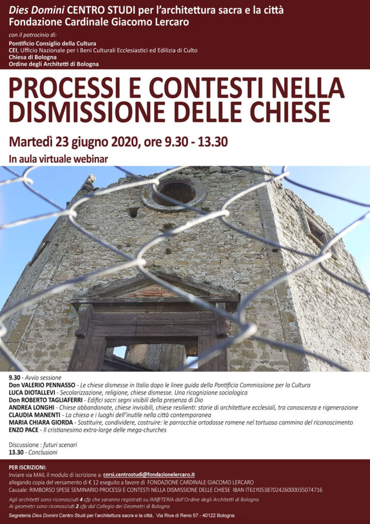 Questo appuntamento vuole essere un’ occasione per approfondire e dare continuità alla riflessione che il Pontificio Consiglio della Cultura, la CEI e l’Università Gregoriana hanno avviato nel novembre del 2018 con il convegno ‘Dio non abita più qui?’ e dal quale sono scaturite le linee guida per il recupero delle chiese non più in uso.