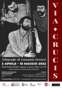 Sabato 2 aprile alle ore 18 presso il Museo Diocesano San Giovanni di Asti, via Natta 36, sarà inaugurata la mostra “VIA CRUCIS. Xilografie di Giovanni Dettori”, in occasione del tempo di Quaresima e Pasqua di quest’anno.